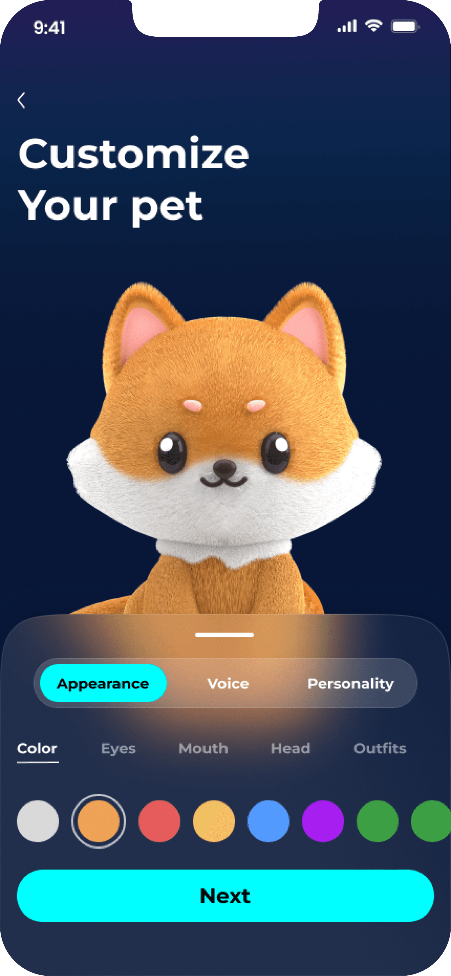 2. Customize appearance, voice, and personality during onboarding